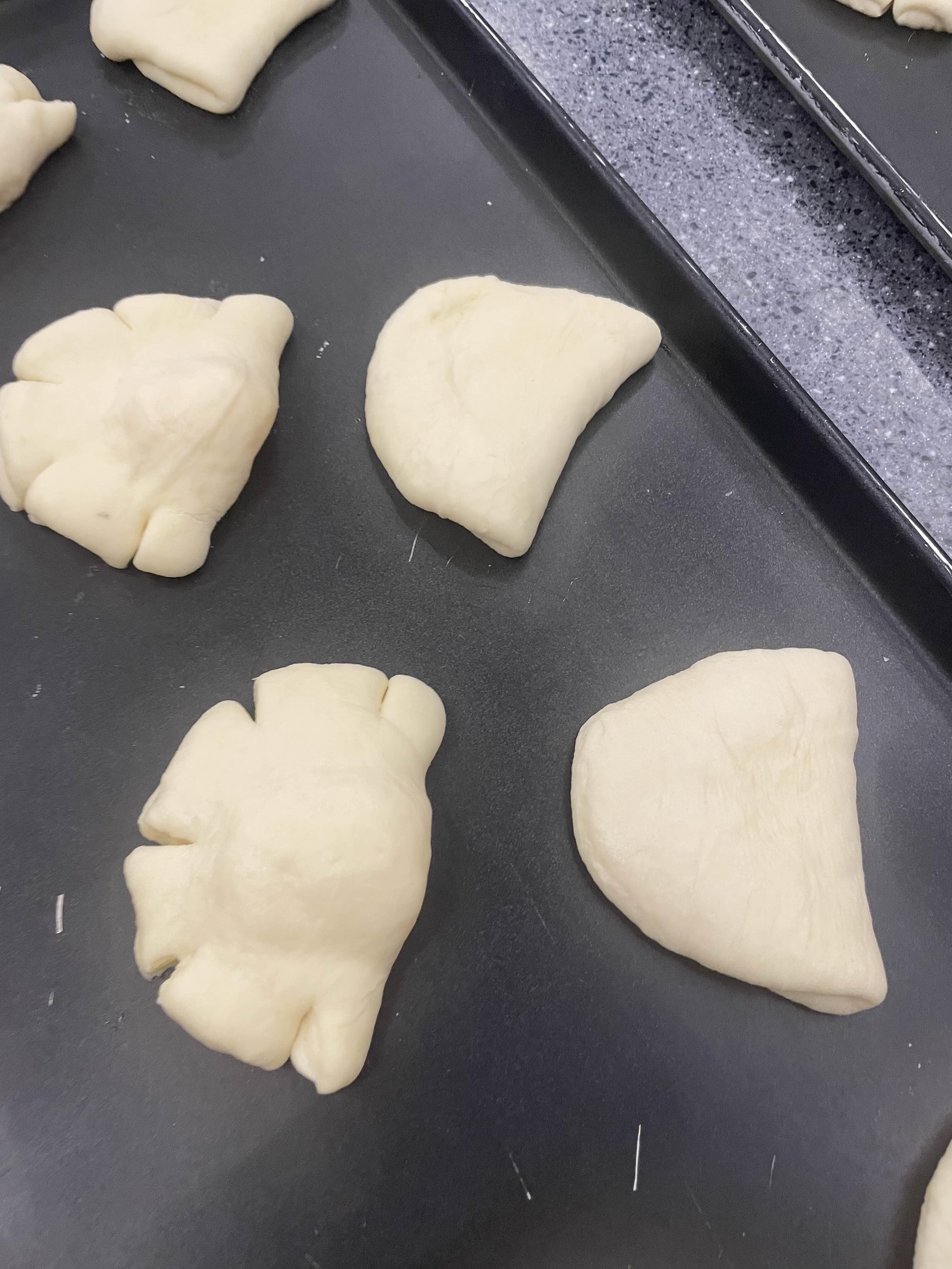 - 충전형 : 15cm 이상 밀어펴기 후, 커스터드 크림 30g 넣고 봉합 ▶️ 2cm 깊이로 칼집 5포인트 (최대한 일정한 간격으로)