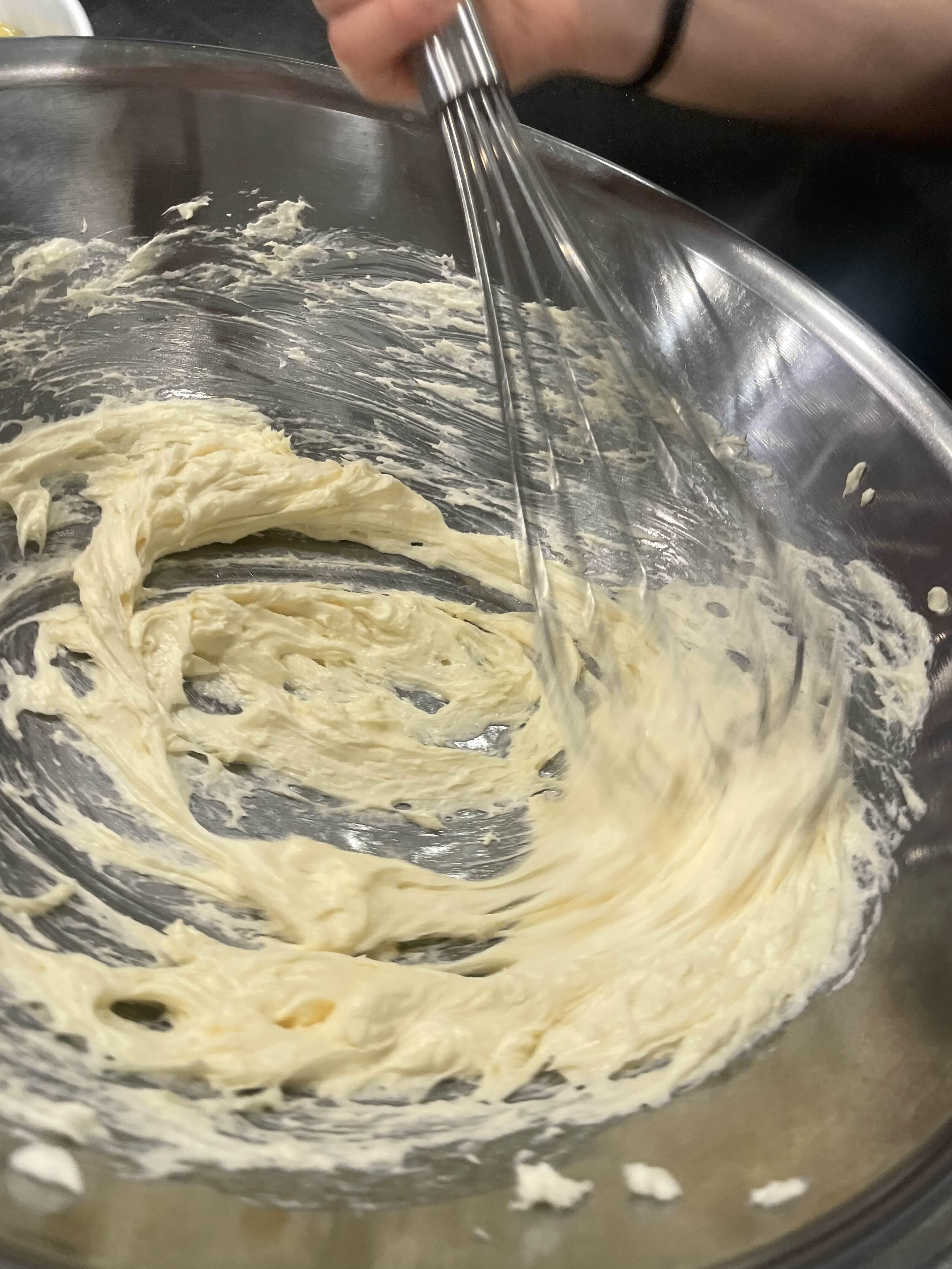 버터 포마드화 (마요네즈 질감) ▶️ 설탕 넣고 맛소금 크기 될 때까지 섞어주기 ▶️ 계란 섞어서 여러번 나눠 섞어서 설탕 입자 없을 때 멈추기 (크림화 100%) ▶️ 체친 가루 넣고 가볍게 섞어주기 (#모양으로 섞기) ▶️ 가루가 거의 안보이면 브랜디 넣고 섞어주기 ▶️ 짤주머니에 넣기