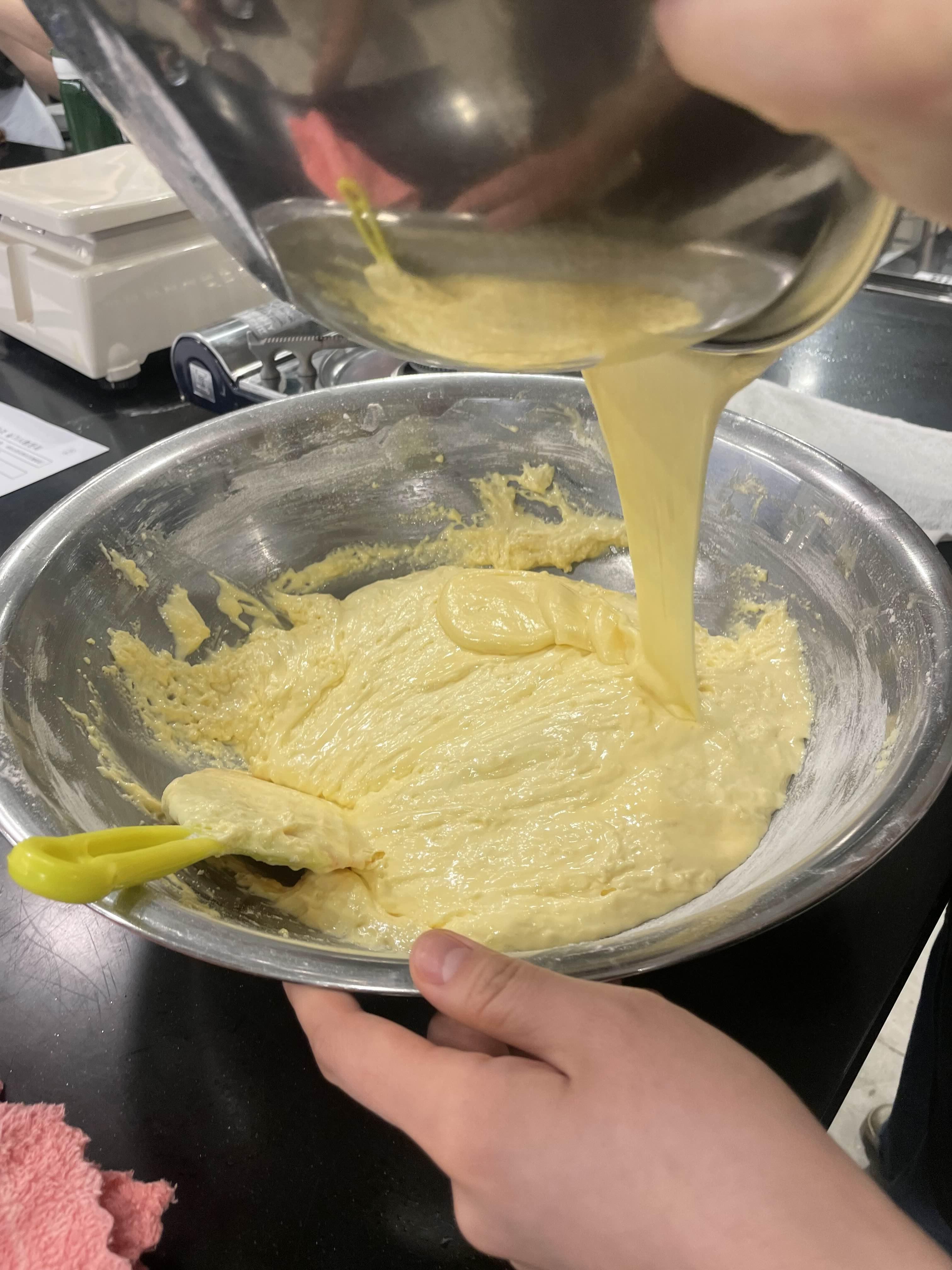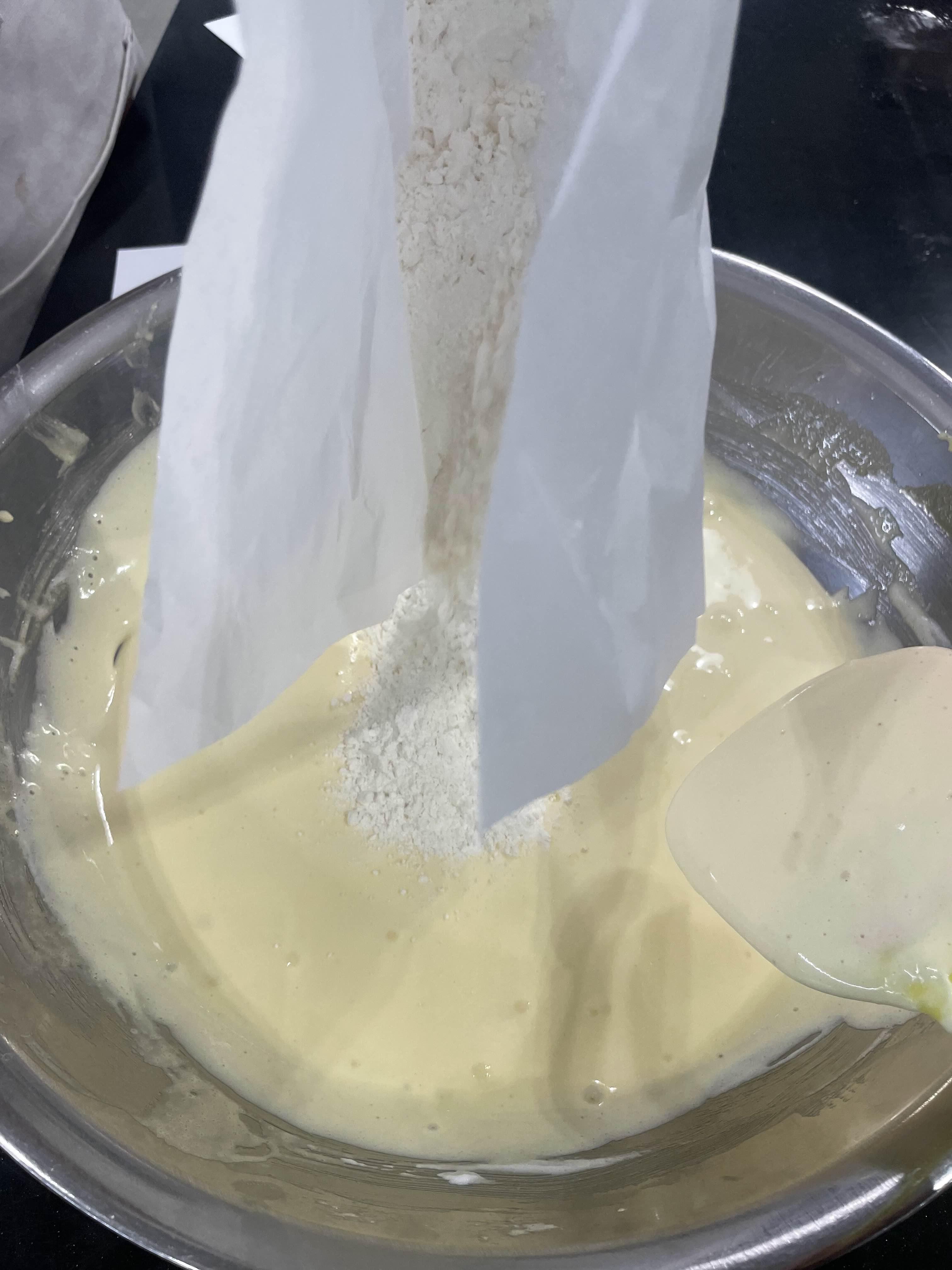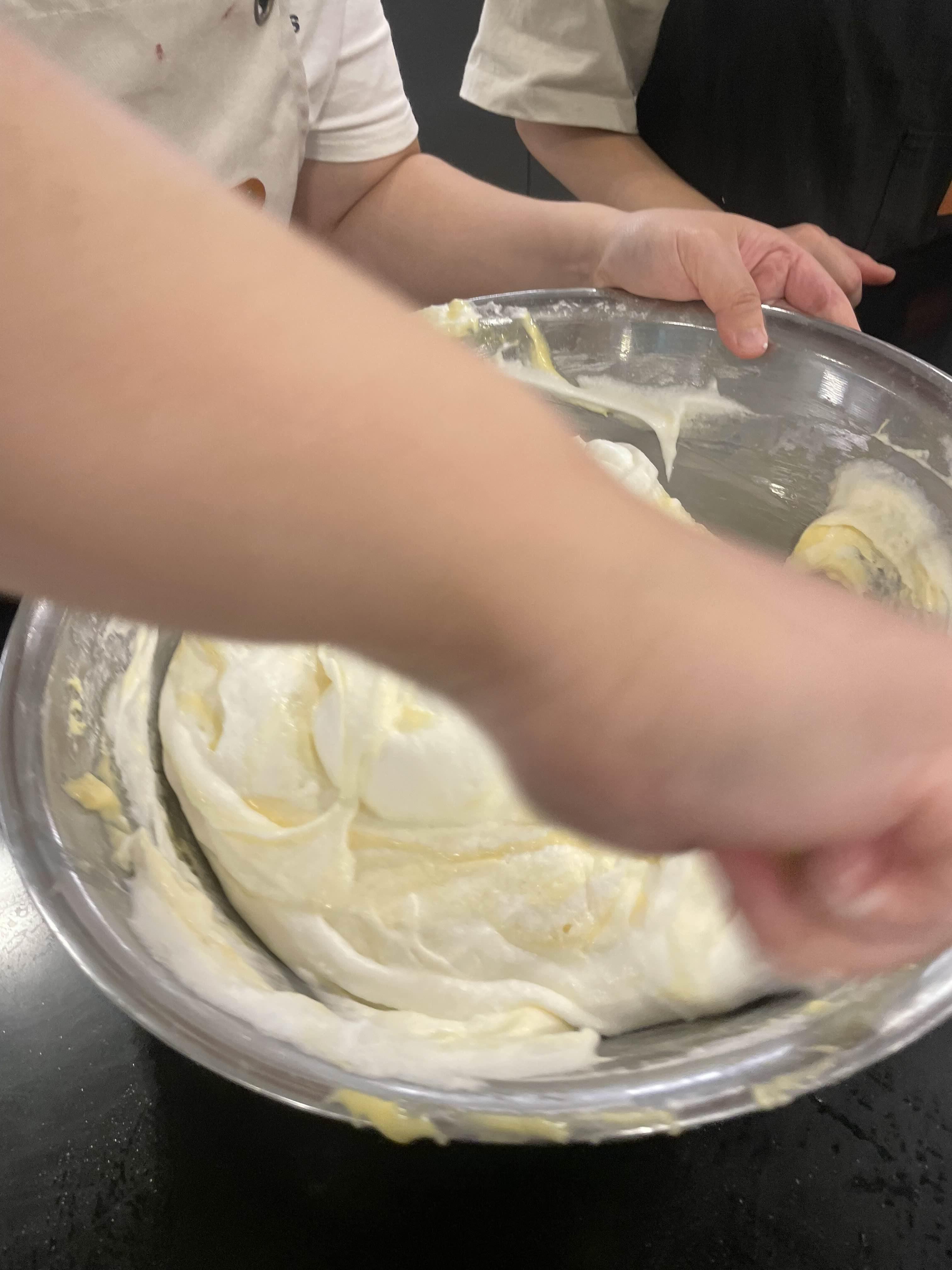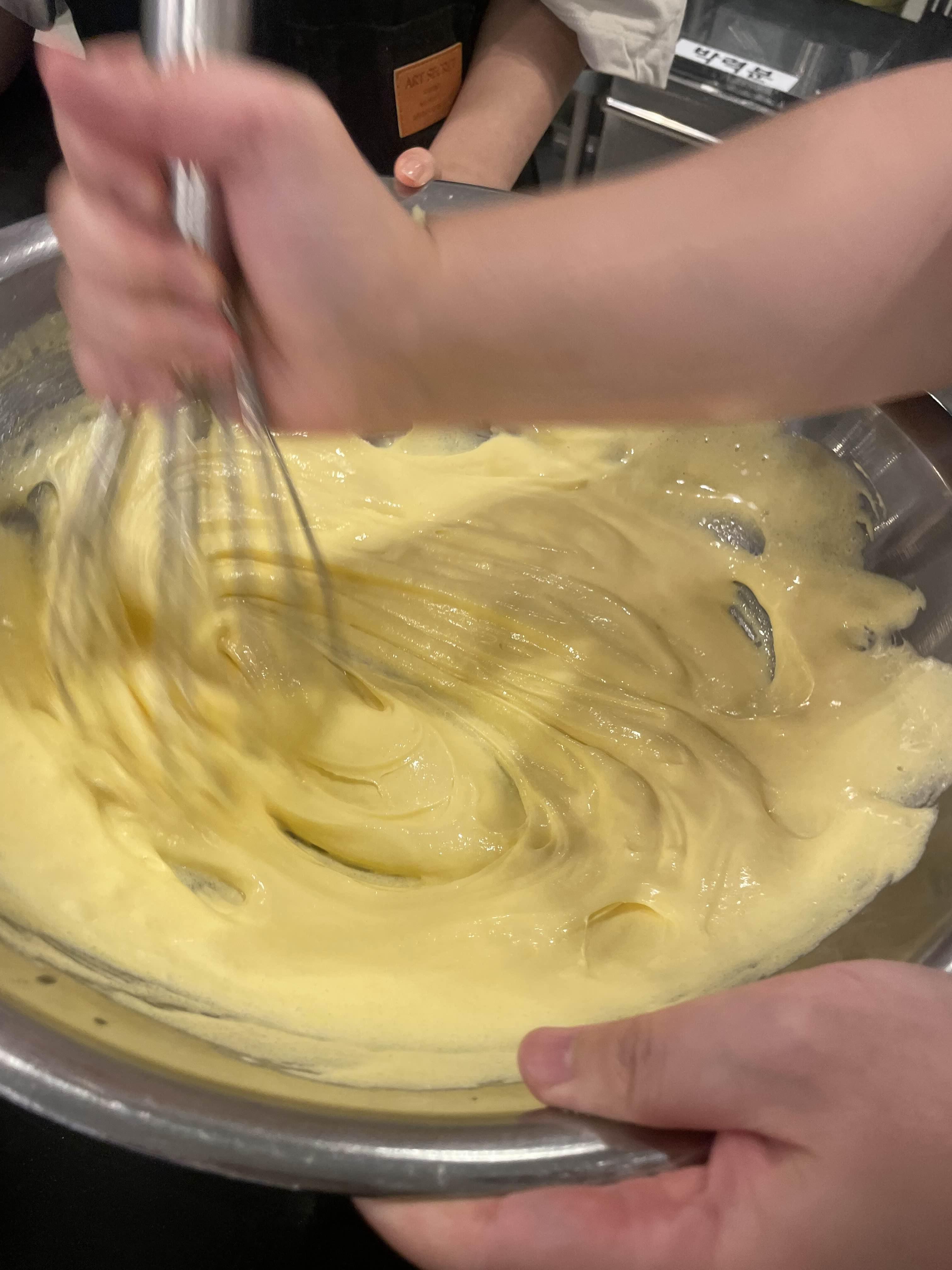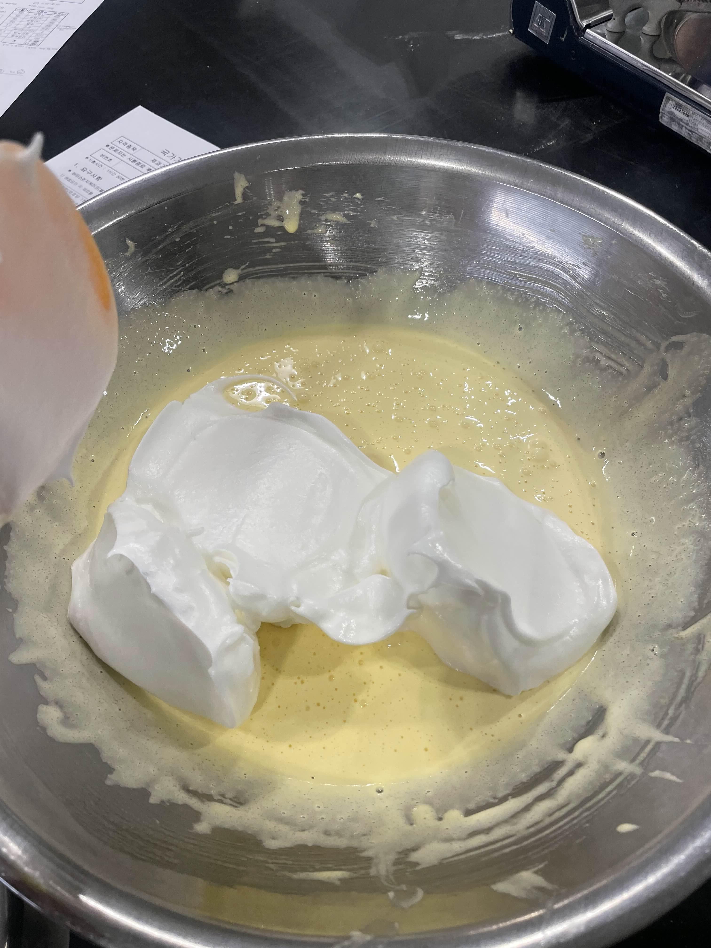 ✔️ 노른자 반죽에 머랭 1/3 넣고 완전히 섞기