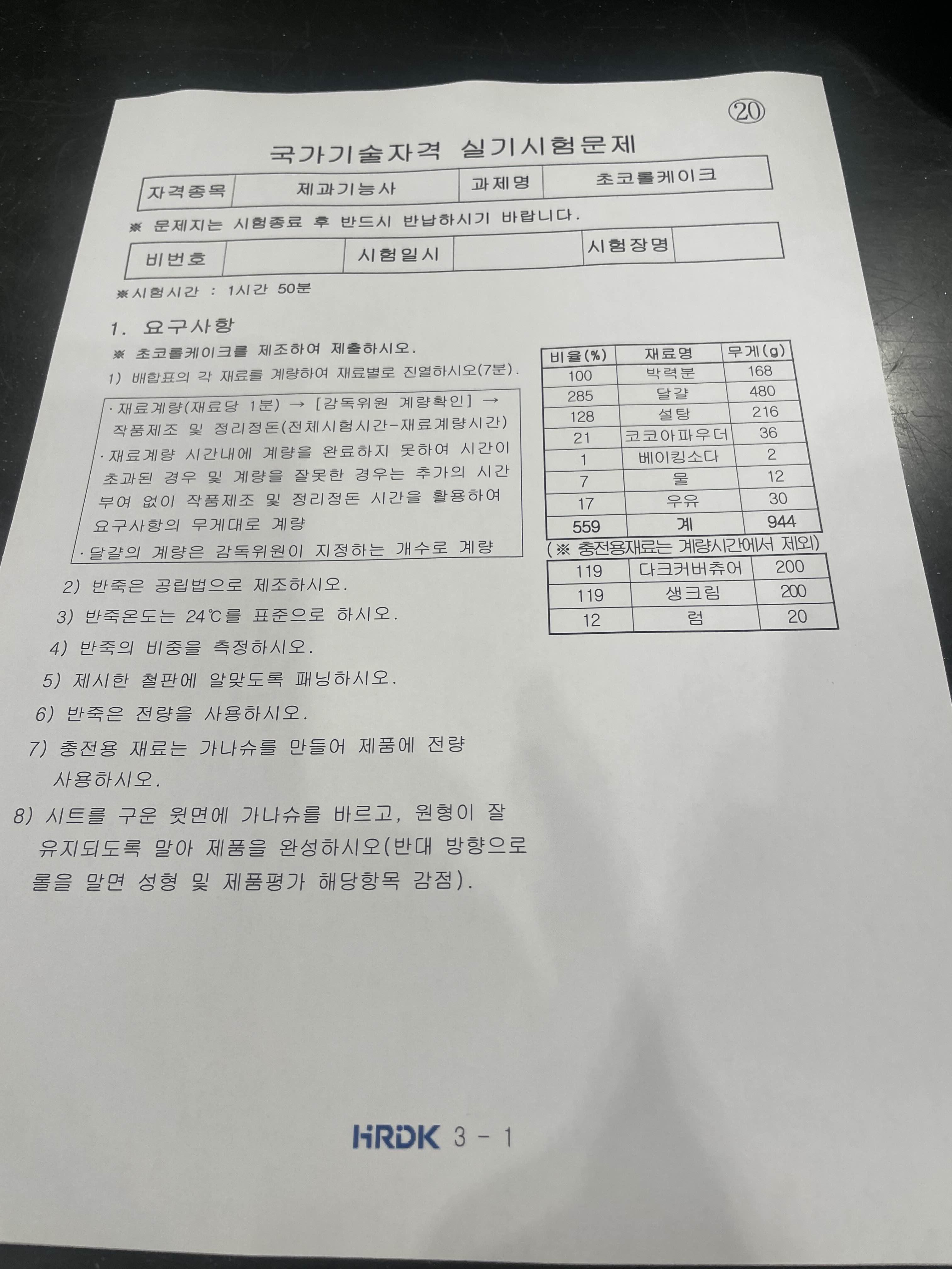 오늘의 제과기능사 실기 수업은